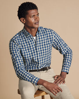 Button-Down Collar Non-Iron Stretch Poplin Plaid Check Shirt - Ocean Bluehttps://www.charlestyrwhitt.com/on/demandware.static/-/Sites-ctshirts-master/default/dwbceb4624/hi-res/CSN0514OCE_MODEL_TUCKED.jpgCSN0514OCEThere's lots to love about our non-iron stretch poplin shirts, from the lightweight weave – perfect for warmer days or staying cool while layering – to the pure cotton yarn with natural stretch for added comfort. Our legendary non-iron finish doesn't go amiss either, taking you creaseless-ly from work to weekend or day to night.