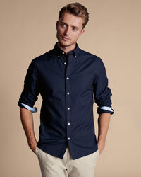 Button-Down Collar Washed Oxford Plain Shirt - Navy Blue https://www.charlestyrwhitt.com/on/demandware.static/-/Sites-ctshirts-master/default/dw75898659/hi-res/CSR2036NAV_MODEL_UNTUCKED.jpg CSR2036NAV This pure cotton shirt has plenty of natural stretch and flexibility – made for work-to-play comfort. We gave the classic Oxford weave an eco-garment wash, providing you with the same supreme softness while being that bit kinder to the planet. Casual touches like the button-down collar give the formal silhouette a wear-me-anywhere versatility. If you’re a man who loves the finer details, you'll appreciate the trim. Just pair it with tonal chinos for a suave look. https://www.charlestyrwhitt.com/au/button-down-collar-washed-oxford-plain-shirt---navy-blue/CSR2036NAV.html AUD 59.00 OutOfStock 4.60 99