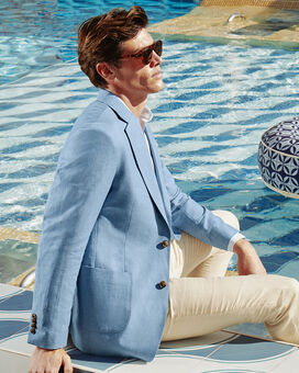 Linen Cotton Jacket – Light Blue https://www.charlestyrwhitt.com/on/demandware.static/-/Sites-ctshirts-master/default/dwcaf8e68a/hi-res/SES0006LBU_LIFESTYLE.jpg SES0006LBU The natural fibres of this linen-cotton jacket lend it a relaxed look, as do the lack of shoulder pads and the lighter chest canvas. It's a smart-casual staple with a double - vented back hem for easy movement. . The notch lapels and four kissing cuff buttons are sharp details, and internally, there's a lower pocket as well as two breast ones. https://www.charlestyrwhitt.com/au/linen-cotton-jacket-%E2%80%93-light-blue/SES0006LBU.html AUD 449.00 InStock 0 0