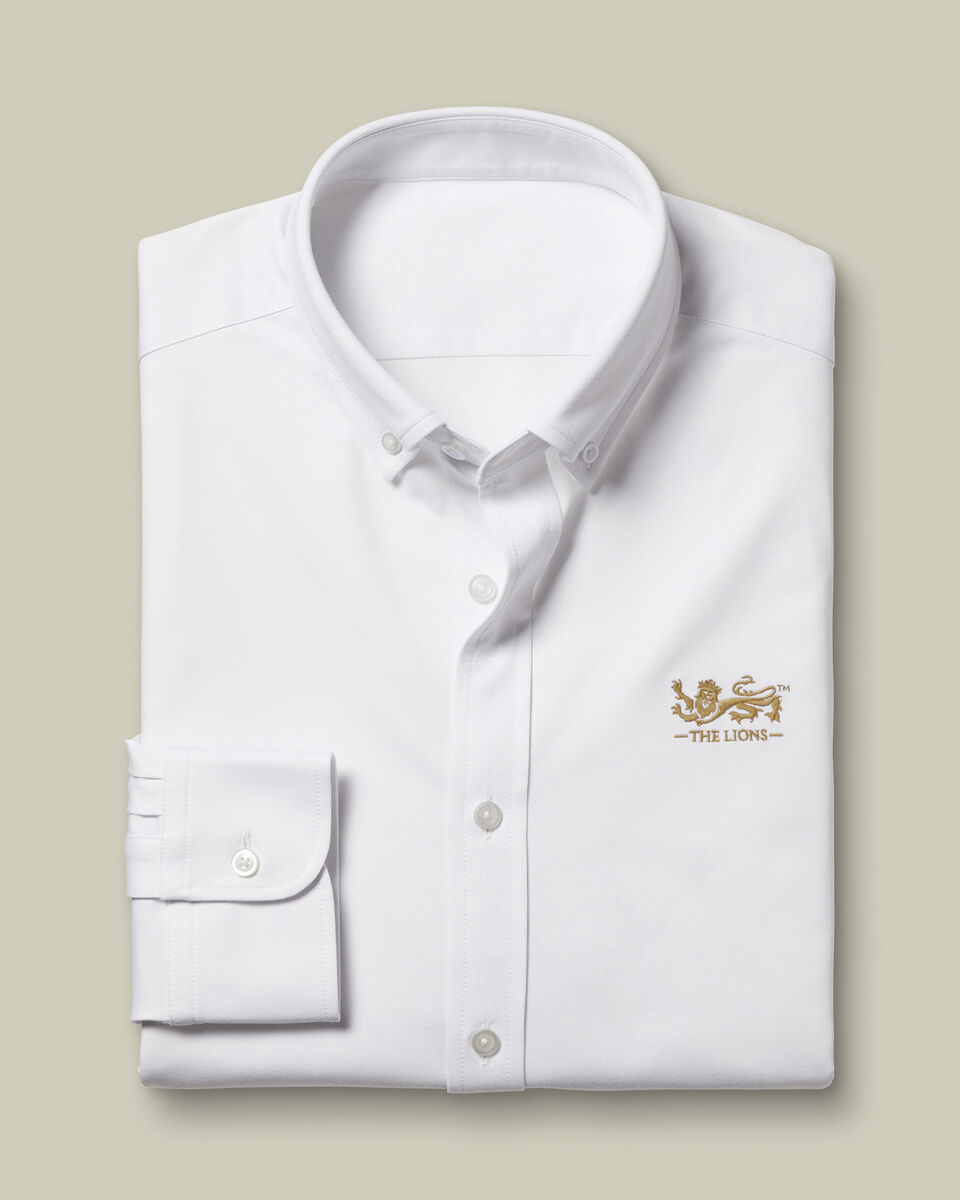 The dream smart-casual shirt - crafted from a knitted fabric for extra flexibility, it's also easy-iron and moisture-wicking. Pick from easy neutral shades, all complete with the gold lion logo.