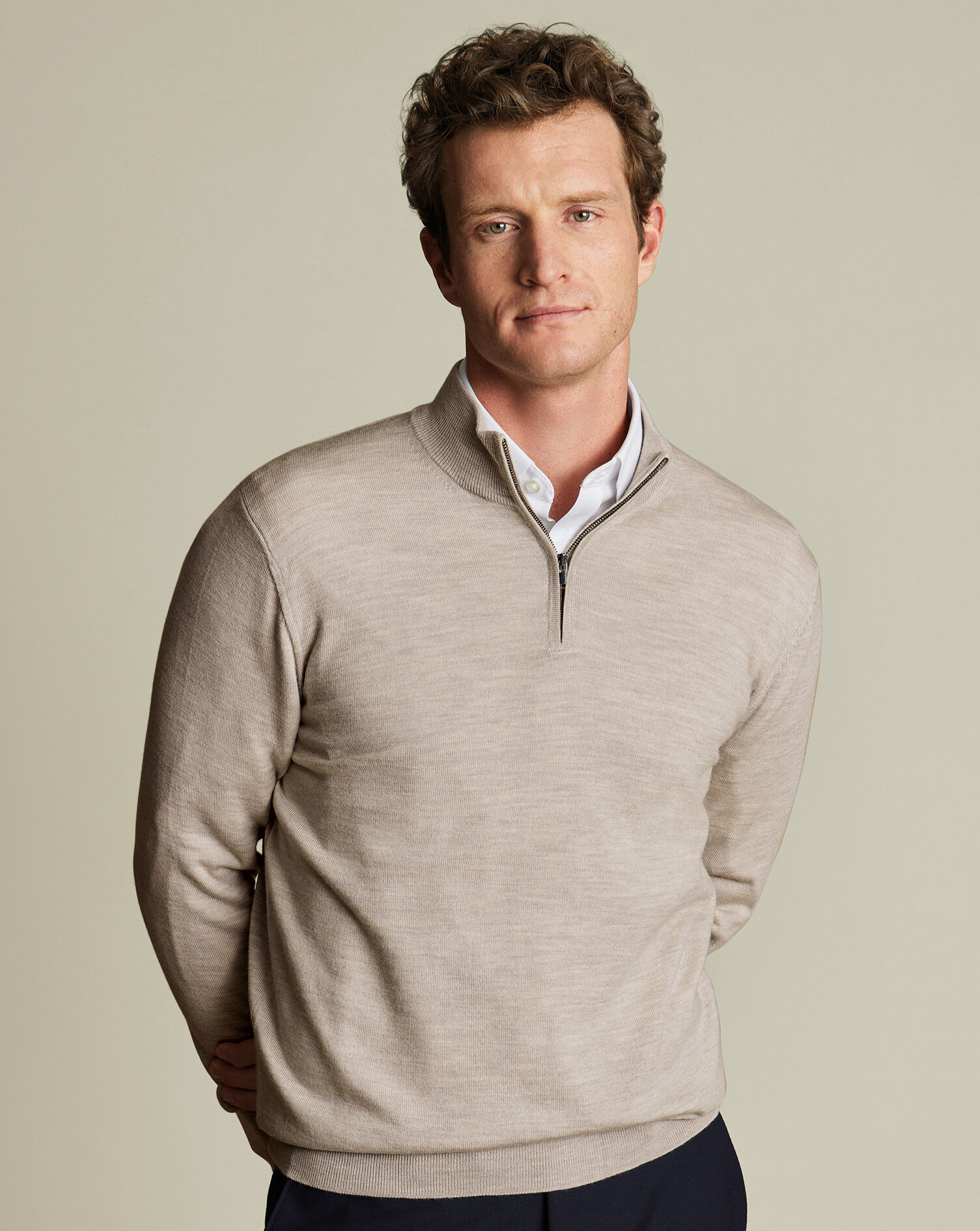 Stay warm yet smart in a zip-neck jumper. Choose from a selection of quality half zip and quarter zip jumpers. Knitted from fine merino and cashmere, Tyrwhitt knitwear makes a cosy layer on cooler days – here with a zip-up front for a contemporary take.