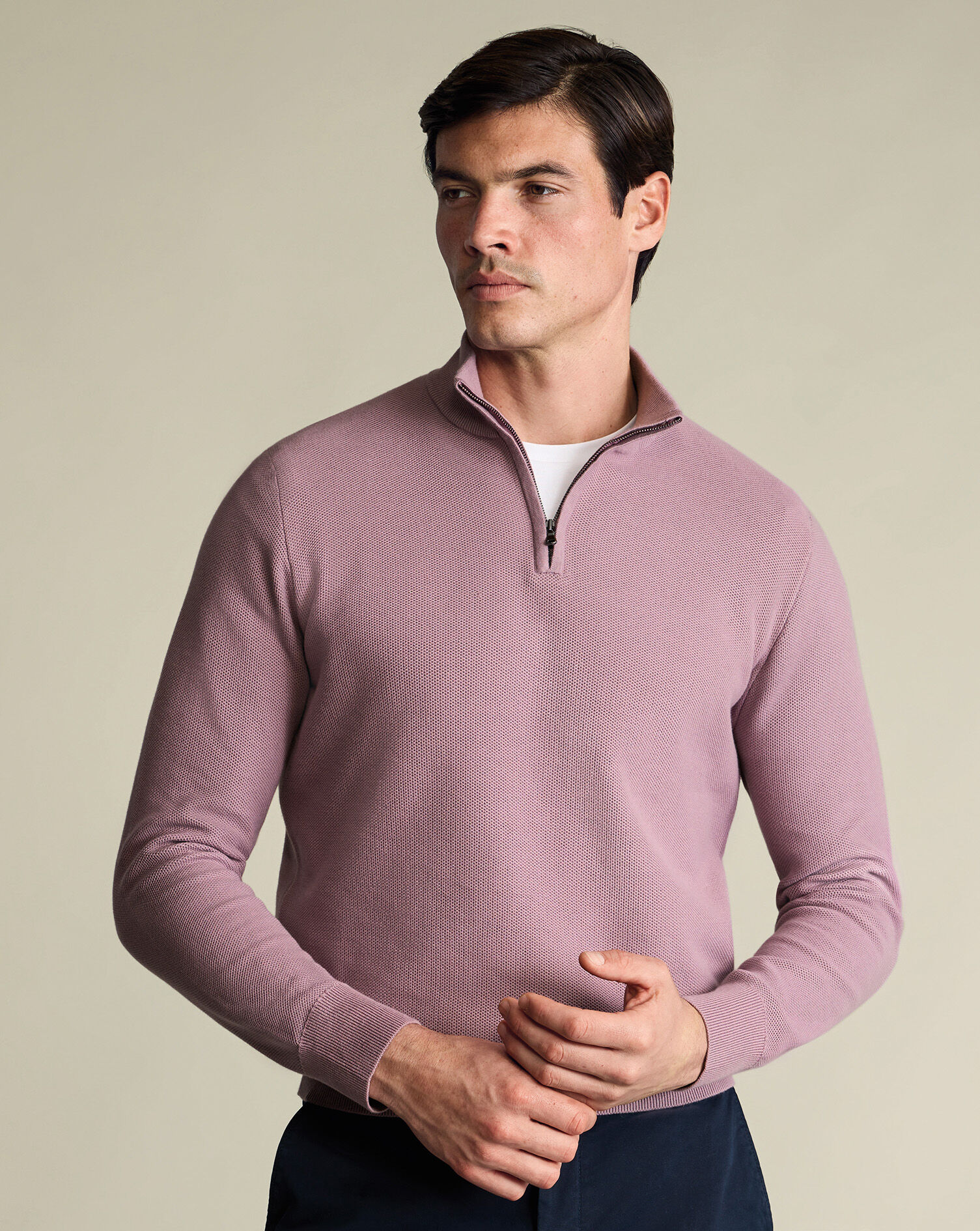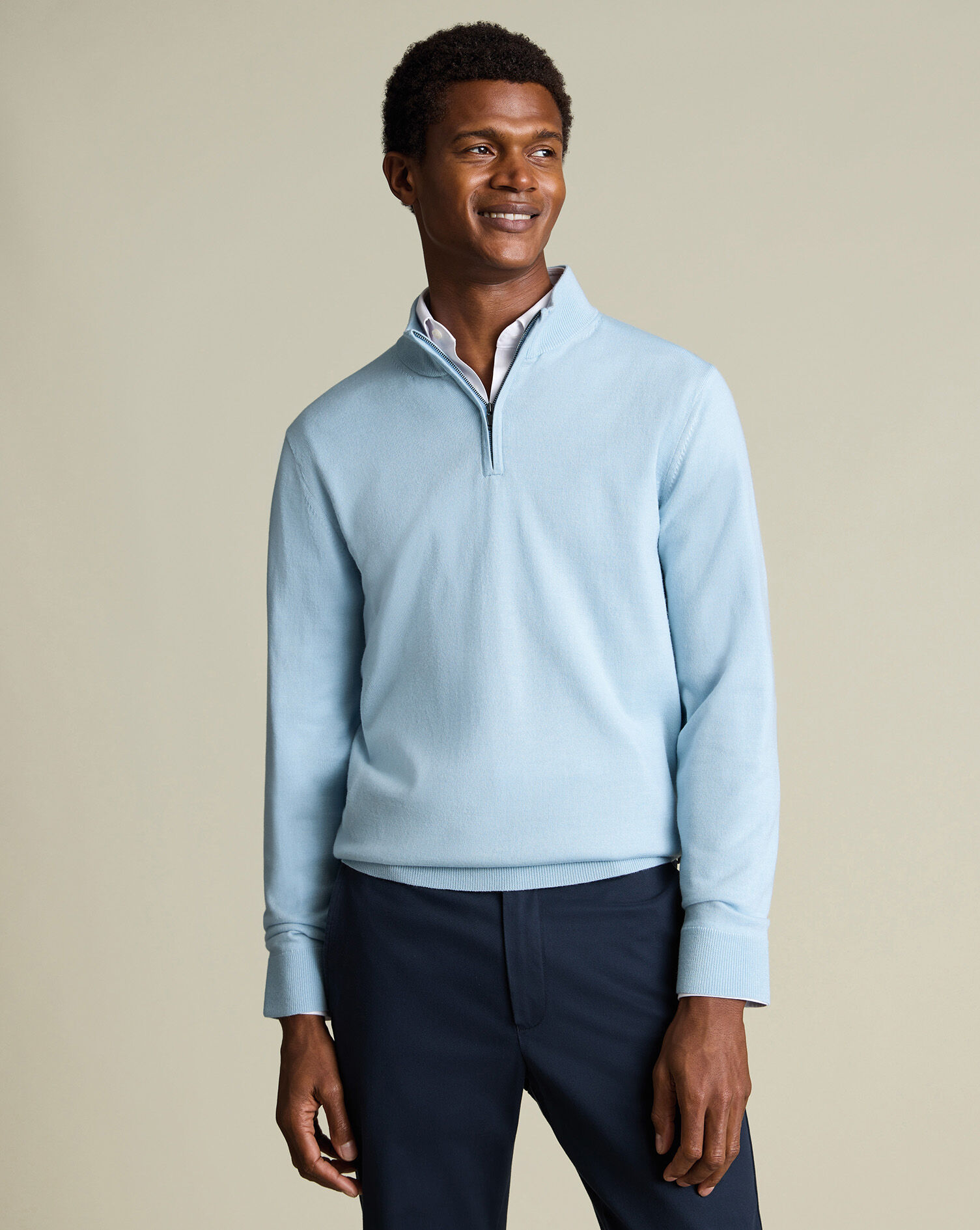 Stay warm yet smart in a zip-neck jumper. Choose from a selection of quality half zip and quarter zip jumpers. Knitted from fine merino and cashmere, Tyrwhitt knitwear makes a cosy layer on cooler days – here with a zip-up front for a contemporary take.