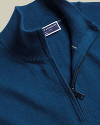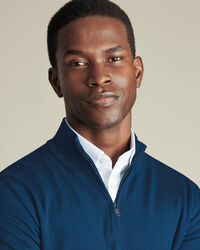 Merino Zip Neck Jumper - Atlantic Bluehttps://www.charlestyrwhitt.com/on/demandware.static/-/Sites-ctshirts-master/default/dwa90ac974/hi-res/KNITWEAR/CT/KNM0005ATB_MODEL_FRONT.jpgKNM0005ATBThis refined-yet-casual zip neck is crafted from pure, Woolmark-certified Merino wool. Known as nature's performance fabric, Merino is comfortably breathable and temperature regulating - and has the softest handle of any knitwear. We've gently washed it for an even silkier finish, resulting in a supple jumper that subtly moulds itself to your body. The styling is simple, letting the fine fibres take centre stage. There's traditional ribbing on the cuffs and hem and the understated neckline means this jumper looks superb when worn with a button-down shirt.https://www.charlestyrwhitt.com/au/merino-zip-neck-jumper---atlantic-blue/KNM0005ATB.htmlAUD75.00OutOfStock52