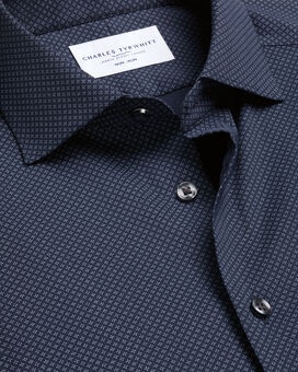 Non-Iron Performance Print Shirt – Navyhttps://www.charlestyrwhitt.com/on/demandware.static/-/Sites-ctshirts-master/default/dw2d274c83/SCS/SCS0076NAV/SCS0076NAV_COLLAR_DETAIL_01.jpgSCS0076NAVWe've used more sustainable yarns, including 41% GRS-certified recycled nylon, to create this cotton-rich blend. You'll notice the exceptional quality of the twill weave, with its smooth handfeel, and appreciate the movement of added stretch and a split back yoke. The lightweight and breathable fabric is ready to make warm days comfortable, thanks to naturally moisture-wicking properties. For a relaxed feel, we've opted for single-button, rounded cuffs and a semi-cutaway collar with lightweight interlining, plus our non-iron finish (of course).https://www.charlestyrwhitt.com/au/non-iron-performance-print-shirt-%E2%80%93-navy/SCS0076NAV.htmlAUD139.00InStock00