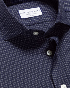 Non-Iron Performance Twill Fine Check Shirt - French Bluehttps://www.charlestyrwhitt.com/on/demandware.static/-/Sites-ctshirts-master/default/dwf4bbe168/hi-res/FOB0769FRE_COLLAR_DETAIL.jpgFOB0769FREWe've used more sustainable yarns, including 41% GRS-certified recycled nylon, to create this cotton-rich blend. You'll notice the exceptional quality of the twill weave, with its smooth handfeel, and appreciate the movement of added stretch and a split back yoke. The lightweight and breathable fabric is ready to make warm days comfortable, thanks to naturally moisture-wicking properties. For a relaxed feel, we've opted for single-button, rounded cuffs and a semi-cutaway collar with lightweight interlining, plus our non-iron finish (of course).https://www.charlestyrwhitt.com/au/non-iron-performance-twill-fine-check-shirt---french-blue/FOB0769FRE.htmlAUD59.00InStock4.4044
