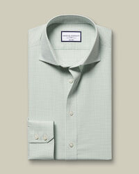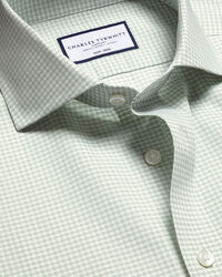 Non-Iron Poplin Gingham Shirt - Greenhttps://www.charlestyrwhitt.com/on/demandware.static/-/Sites-ctshirts-master/default/dwf54981c9/hi-res/FORMAL_SHIRTS/CT/FOP0009GRN_COLLAR_DETAIL.jpgFOP0009GRNConquer smart dressing on even the warmest days with our lightweight and sublimely breathable non-iron poplin shirt. The poplin weave is crafted from 100% cotton, with a smooth finish and a smart matt appearance. Our non-iron finish is more than a little handy, too.