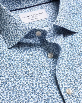 Non-Iron Stretch Floral Print Shirt – White & Sky Bluehttps://www.charlestyrwhitt.com/on/demandware.static/-/Sites-ctshirts-master/default/dw3f25a0f0/SCS/SCS0089SKY/SCS0089SKY_COLLAR_DETAIL_01.jpgSCS0089SKYThere's no better way to add some personality to your tailoring than with our stretch print shirts. They're cut from tactile twill with added stretch for a perfect fit and have a neat, semi-cutaway collar. The split-back yoke allows freedom of movement. You can choose from our exclusive in-house designs, including floral, animal and geometric prints. To make life a little easier, these smart-casual pieces are crafted with our non-iron finish for easy maintenance. They're also finely detailed with back neck piping and rounded cuffs.https://www.charlestyrwhitt.com/au/non-iron-stretch-floral-print-shirt-%E2%80%93-white-%26-sky-blue/SCS0089SKY.htmlAUD139.00InStock51