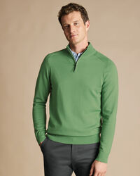 Performance Merino Zip Neck Jumper - Light Greenhttps://www.charlestyrwhitt.com/on/demandware.static/-/Sites-ctshirts-master/default/dw70d209b0/KNJ0452LGN_MODEL_FRONT.jpgKNJ0452LGNOur Performance Merino Jumper combines style with practicality; made for effortless dressing from the golf course to the clubhouse. Crafted from 100% Woolmark-approved fine Merino, the fabric is warm without the bulk, and it's naturally temperature-regulating, so you won't overheat or feel the chill on unpredictable days. The zip-neck and saddle sleeve details have a relaxed sporty feel, and we've added a water-repellent finish so you'll always be prepared. All this tech wrapped up in one jumper. Clever.https://www.charlestyrwhitt.com/au/performance-merino-zip-neck-jumper---light-green/KNJ0452LGN.htmlAUD89.00OutOfStock00