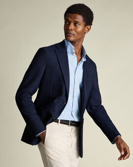 Proper Blazer – Navyhttps://www.charlestyrwhitt.com/on/demandware.static/-/Sites-ctshirts-master/default/dw5c1253d9/SEB/SEB0060NAV/SEB0060NAV_MODEL_FRONT_01.jpgSEB0060NAVThis timeless Proper Blazer is a true all-rounder. It makes light work of smart-casual dressing and teams well with a shirt and tie for formal events. To give it a modern twist, wear it with a casual shirt, chinos, and trainers. This polished blazer is made from wool with a touch of stretch, and it's now available in royal blue or taupe. It's cut to a classic single-breasted silhouette without shoulder pads for relaxed wear, also available in a double breastesed silhoutte in navy.https://www.charlestyrwhitt.com/au/proper-blazer-%E2%80%93-navy/SEB0060NAV.htmlAUD399.00InStock00