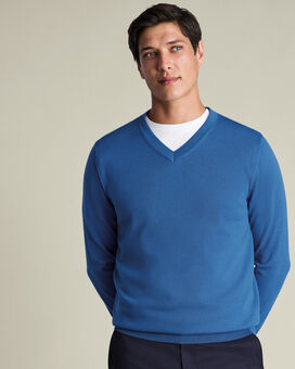 Pure Merino V-Neck Jumper – Ocean Blue https://www.charlestyrwhitt.com/on/demandware.static/-/Sites-ctshirts-master/default/dw3340abf8/KNM/KNM0013OCE/KNM0013OCE_MODEL_FRONT_01.jpg KNM0013OCE We’ve updated our bestselling knit with a modern neck that’s deeper and more defined for a cleaner, contemporary look. Spun from Woolmark-certified Merino wool, this jumper is naturally breathable, temperature regulating and exceptionally soft. The gentle wash gives it a silky finish that moves with you. Traditional ribbed cuffs and hem keep things polished, while the understated style works effortlessly over a collared shirt. https://www.charlestyrwhitt.com/au/pure-merino-v-neck-jumper-%E2%80%93-ocean-blue/KNM0013OCE.html AUD 129.00 InStock 0 0