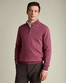 Pure Merino Zip Neck Jumper - Dark Pinkhttps://www.charlestyrwhitt.com/on/demandware.static/-/Sites-ctshirts-master/default/dw26fc84f4/hi-res/KNM0010DPK_MODEL_FRONT.jpgKNM0010DPKKnown as nature's performance fabric, Merino is comfortably breathable and temperature regulating - and has the softest handle of any knitwear. We've gently washed it for an even silkier finish, resulting in a supple jumper that subtly moulds itself to your body. The styling is simple, letting the fine fibres take centre stage. There's traditional ribbing on the cuffs and hem and the understated neckline means this jumper looks superb when worn with a button-down shirt.https://www.charlestyrwhitt.com/au/pure-merino-zip-neck-jumper---dark-pink/KNM0010DPK.htmlAUD109.65InStock52