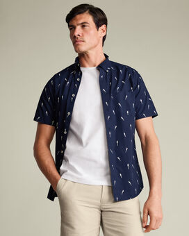 Short Sleeve Stretch Washed Poplin Print Shirt - Navyhttps://www.charlestyrwhitt.com/on/demandware.static/-/Sites-ctshirts-master/default/dw24f4f179/CSM/CSM0032NAV/CSM0032NAV_MODEL_UNTUCKED_01.jpgCSM0032NAVThey’re made from 100% cotton poplin with natural stretch, giving you lightweight comfort and easy movement. We’ve washed the fabric for softness from the first wear, so the shirts feel relaxed while keeping a polished look. Design details include a neat button-down collar, a spade-shaped chest pocket, and a single back yoke. Created exclusively in-house, the collection offers intricate florals and conversational prints to bring individuality to smart-casual dressing.https://www.charlestyrwhitt.com/au/short-sleeve-stretch-washed-poplin-print-shirt---navy/CSM0032NAV.htmlAUD129.00InStock00