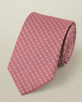 Silk Geo Pattern Tie - Light Coral Pinkhttps://www.charlestyrwhitt.com/on/demandware.static/-/Sites-ctshirts-master/default/dw73bb2621/hi-res/TIC2100LCP_ROLLED.jpgTIC2100LCPTo keep the vivid design adorning this silk tie in tip-top shape, we added a clever stain-resistant finish that repels liquid.