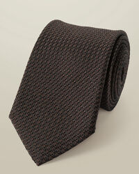 Silk Grenadine Italian Tie – Chocolate Brownhttps://www.charlestyrwhitt.com/on/demandware.static/-/Sites-ctshirts-master/default/dwe22d7086/TIL/TIL0640CHC/TIL0640CHC_ROLLED_01.jpgTIL0640CHCThis impeccable accessory is expertly crafted in Italy, using Lake Como fabric in a local weaving tradition that goes back over a century. The grenadine in the pure silk offers an interesting textural finish and creates visual depth. The result is a tie that's perfect for wearing with a crisp white shirt and sharp blazer to your next formal event. A keeper loop means the tail end of the tie will remain tidy.https://www.charlestyrwhitt.com/au/silk-grenadine-italian-tie-%E2%80%93-chocolate-brown/TIL0640CHC.htmlAUD89.00InStock00