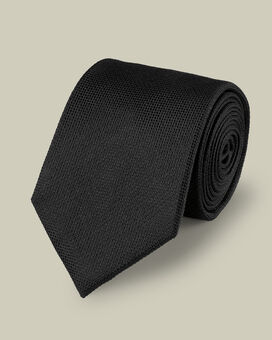 Silk Textured Tie - Blackhttps://www.charlestyrwhitt.com/on/demandware.static/-/Sites-ctshirts-master/default/dwdb01ba3d/hi-res/TIES/CT/TIC2020BLK_ROLLED.jpgTIC2111BLKWe've treated our textured tie with a high-tech finish so liquid simply rolls right off, minimising staining. Great news for those breakfast meetings and quick coffees on the train. The supple texture of the silk ensures the tie drapes superbly. We've taken its impeccable look to the next level by adding a hidden loop that holds the tail neatly in place. This hand-finished style has an 8 cm blade, so it works with most collars.https://www.charlestyrwhitt.com/au/silk-textured-tie---black/TIC2111BLK.htmlAUD55.00InStock00