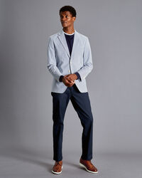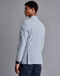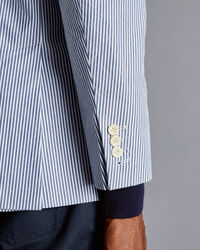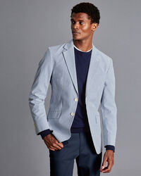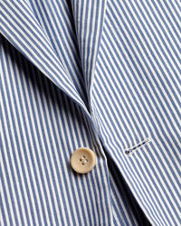 Striped Cotton Seersucker Jacket - Bluehttps://www.charlestyrwhitt.com/on/demandware.static/-/Sites-ctshirts-master/default/dw1adc85ce/hi-res/SEF0152BLU_MODEL_FRONT.jpgSEF0152BLUOur lightweight striped jacket will keep you looking both comfortable and elegant through warmer weather. The single-breasted, two-button styling and soft construction create an easy-to-wear look that's perfect for daytime events and weekends away. A working four-button cuff and Corozo-nut buttons add to this garment's classic appeal, while the half-lining ensures it stays sharp. Wear this piece over a simple T-shirt for a casual day out, or with a button-down shirt for a dressier occasion.https://www.charlestyrwhitt.com/au/striped-cotton-seersucker-jacket---blue/SEF0152BLU.htmlAUD299.00OutOfStock00