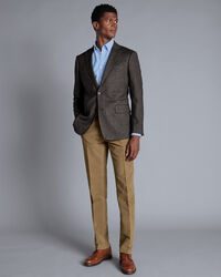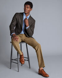 There are many reasons to choose our pure wool jacket. There's the soft, textured fabric, which is naturally temperature-regulating, making it perfect for year-round wear. Then there's the semi-structured construction, which gradually moulds to your body for the perfect fit. Look out for typical Tyrwhitt details too, a silky lining, and plenty of pockets. Subtle stitching results in a clean, tailored aesthetic and twin back vents ensure a refined shape.
