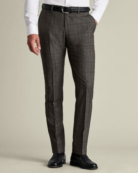 Ultimate Performance Check Suit Pants - Mochahttps://www.charlestyrwhitt.com/on/demandware.static/-/Sites-ctshirts-master/default/dwfc9d5893/hi-res/SUT0330MCA_TROUSER_FRONT.jpgSUT0330MCAThe Super 120s Merino wool construction wins top marks for crease recovery, ensuring it stays sharp until the moment you take it off. Not only that – it also offers plenty of natural stretch. It's breathable, temperature-regulating and durable, too. The jacket is cut to a single-breasted silhouette, with a half-canvas construction for an impeccable fit. Plus, we’ve added working button cuffs so you can easily roll up the sleeves. Look closely, and you'll spot a pop of colour on the split melton undercollar. We’ve given the flat-fronted pants a comfortable curved waistband.https://www.charlestyrwhitt.com/au/ultimate-performance-check-suit-pants---mocha/SUT0330MCA.htmlAUD170.00InStock00