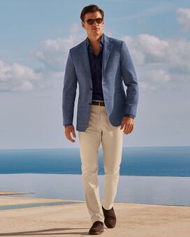 Wool Linen Silk Jacket - Indigo Check https://www.charlestyrwhitt.com/on/demandware.static/-/Sites-ctshirts-master/default/dwf807ce0c/hi-res/SEF0364IDG.jpg SEF0364IDG When there's a special occasion in the diary, you'll want to reach for this staple. The luxury blend features wool, linen and silk, with the latter making it a breathable option for the summer months. It's tailored to a flattering slim fit, with a canvas chest piece and AMF stitching. As for the extra finishing details, we've added corozo nut buttons at the cuffs. Look inside, and you'll spot our exclusive Tyrwhitt lapwing design on the silky lining. https://www.charlestyrwhitt.com/au/wool-linen-silk-jacket---indigo-check/SEF0364IDG.html AUD 299.00 InStock 5 1