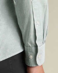 Button-Down Stretch Washed Oxford Stripe Shirt – Greenhttps://www.charlestyrwhitt.com/on/demandware.static/-/Sites-ctshirts-master/default/dw461dbcbf/hi-res/default/CSC/CSC0030GWT/CSC0030GWT_MODEL_TUCKED_03.jpgCSC0030GWTThis pure cotton shirt has plenty of natural stretch and flexibility – made for work-to-play comfort. We gave the classic Oxford weave a garment wash, providing you with supreme softness. Final touches like the button-down collar give the casual silhouette a wear-me-anywhere versatility. Just pair it with tonal chinos for a suave look.https://www.charlestyrwhitt.com/ca/en_CA/button-down-stretch-washed-oxford-stripe-shirt-%E2%80%93-green/CSC0030GWT.htmlCAD179.00InStock00