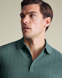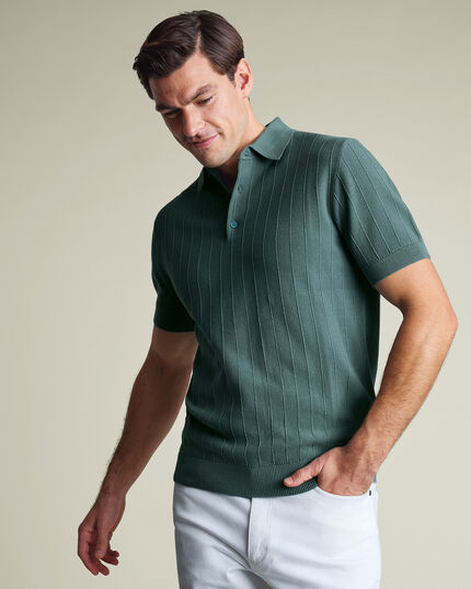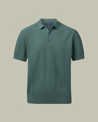 Cotton Stripe Texture Knitted Polo – Tealhttps://www.charlestyrwhitt.com/on/demandware.static/-/Sites-ctshirts-master/default/dwc1bb2172/KNT/KNT0016TEL/KNT0016TEL_MODEL_FULL_01.jpgKNT0016TELThe stripe-textured knit polo is crafted from 100% cotton that's naturally breathable and temperature regulating, then garment washed for softness. A mid-weight feel makes it comfortable on its own or layered when the day calls for it. Neat details refine the look: a classic collar, three-button placket with dyed-to-match buttons, and ribbed trims. Machine washable and built for repeat wear, it balances sharp style with lasting comfort.https://www.charlestyrwhitt.com/ca/en_CA/cotton-stripe-texture-knitted-polo-%E2%80%93-teal/KNT0016TEL.htmlCAD179.00InStock00