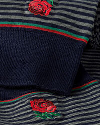 These socks have all the hard-wearing and high-performance qualities that epitomise England Rugby. With reinforced panels at the toe and heel, they're reliably robust. Their comfortable double welt cuffs keep them securely in place no matter how hard you play. The classic navy hue make this pair a versatile choice to slip easily under leather brogues or trainers.