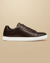 Leather Dress Sneakers - Dark Chocolate https://www.charlestyrwhitt.com/on/demandware.static/-/Sites-ctshirts-master/default/dwb69d6383/hi-res/SHW0246DCL_SIDE.jpgSHW0246DCLWelcome weekend comfort into your footwear collection with these sneakers. The lightweight construction and rubber sole reduces foot fatigue, while the padded Collar and insock provide additional support with every step. The upper is crafted from soft leather with a lining to match. The result? A hard-wearing, versatile shoe for running errands or simply adding a casual touch to your outfit.https://www.charlestyrwhitt.com/ca/en_CA/leather-dress-sneakers---dark-chocolate%C2%A0/SHW0246DCL.htmlCAD239.20InStock4.4028