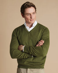 Merino V-Neck Sweater - Moss Greenhttps://www.charlestyrwhitt.com/on/demandware.static/-/Sites-ctshirts-master/default/dw1646b426/hi-res/KNJ0456MOS_MODEL_FRONT.jpgKNJ0456MOSKnown as nature's performance fabric, Merino is comfortably breathable and temperature regulating - and has the softest handle of any knitwear. We've gently washed it for an even silkier finish, resulting in a supple sweater that subtly moulds itself to your body. The styling is simple, letting the fine fibres take centre stage. There's traditional ribbing on the cuffs and hem and the understated neckline means this sweater looks superb when worn with a button-down shirt.https://www.charlestyrwhitt.com/ca/en_CA/merino-v-neck-sweater---moss-green/KNJ0456MOS.htmlCAD129.00OutOfStock00