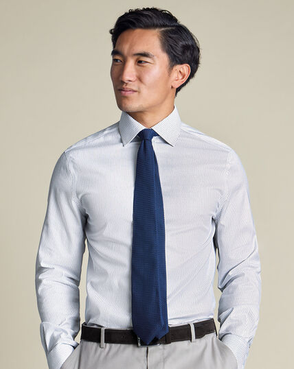 A crisp, white shirt can be the making of a smart suit-and-tie ensemble. With this best-selling style's intricate herringbone twill, enjoy an extra level of sophistication that will complement any formal outfit. Our non-iron finish makes it easy and quick to care for – simply wash and hang. Our complimentary brass collar stiffeners keep the points in place, wear after wear.