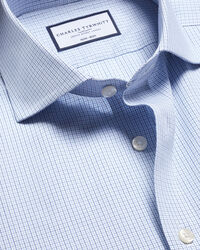 Non-Iron Stretch Poplin Check Shirt - Cobalt Bluehttps://www.charlestyrwhitt.com/on/demandware.static/-/Sites-ctshirts-master/default/dw24497fee/hi-res/CT/FOP0010COB_COLLAR_DETAIL.jpgFOP0010COBConquer smart dressing on even the warmest days with our lightweight and sublimely breathable non-iron poplin shirt. The poplin weave is crafted from 100% cotton, with a smooth finish and a smart matt appearance. Our non-iron finish is more than a little handy, too.