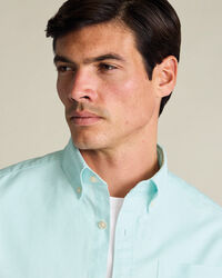 Short Sleeve Button-Down Stretch Washed Oxford Shirt – Aquahttps://www.charlestyrwhitt.com/on/demandware.static/-/Sites-ctshirts-master/default/dw55c389e1/CSC/CSC0035AQA/CSC0035AQA_MODEL_UNTUCKED_01.jpgCSC0035AQAThis pure cotton shirt has plenty of natural stretch and flexibility – made for work-to-play comfort. We gave the classic Oxford weave a garment wash, providing you with supreme softness. Final touches like the button-down collar give the casual silhouette a wear-me-anywhere versatility. Just pair it with tonal chinos for a suave look.https://www.charlestyrwhitt.com/ca/en_CA/short-sleeve-button-down-stretch-washed-oxford-shirt-%E2%80%93-aqua/CSC0035AQA.htmlCAD179.00InStock00