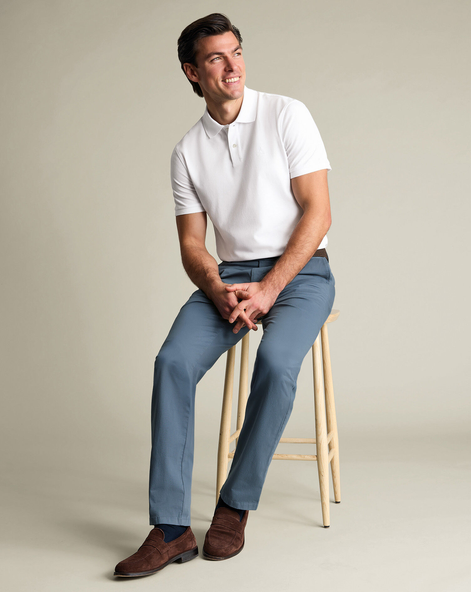 Nous faisons nos pantalons chino de trois façons : chinos sans repassage, effilés et sans plis pour les plus vifs ; chinos habillés pour les plus audacieux ; chinos lavés pour un style décontracté, coupé généreusement pour le chercheur de confort ; et nos chinos ultimes, qui changent la vie pour le style de l'aube au crépuscule.