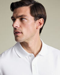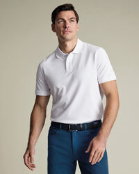 Polo en piqué - Blanchttps://www.charlestyrwhitt.com/on/demandware.static/-/Sites-ctshirts-master/default/dw59502529/JEP/JEP0459WHT/JEP0459WHT_MODEL_FRONT_01.jpgJEP0459WHTCe polo est aussi performant que vous. Le coton respirant légèrement extensible vous offre une liberté de mouvement optimale, tandis que la nouvelle patte de boutonnage à deux boutons, les bordures côtelées et les soufflets latéraux lui apportent de la tenue, pour un look moderne et décontracté.
