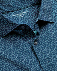 Sorona has the same moisture-wicking properties as polyester, keeping you cool and comfortable, but it's a bio-based material derived from corn sugars. We blend it with cotton to create a polo shirt that feels fantastic and has excellent stretch recovery. You'll appreciate the lightweight feel of the polo – perfect for even sweltering summer days. A playful print that extends over the collar is balanced by classic elements like the short sleeves and simple button placket.