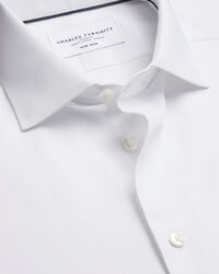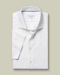 Short Sleeve Non-Iron Cotton Linen Shirt - Whitehttps://www.charlestyrwhitt.com/on/demandware.static/-/Sites-ctshirts-master/default/dw64bdd7f0/SCS/SCS0107WHT/SCS0107WHT_COLLAR_DETAIL_01.jpgSCS0107WHTCrafted from a breathable cotton-linen twill blend, this shirt delivers comfort with structure in equal measure. A clever non-iron finish means you can wash, hang, and wear without the hassle of ironing. The mid-weight construction ensures it works year-round. Smart tailoring details include a semi-cutaway collar, split back yoke for easy movement, and complementary brass collar stays. In a short-sleeve design, it transitions seamlessly from office days to relaxed weekends.https://www.charlestyrwhitt.com/ch/en_CH/short-sleeve-non-iron-cotton-linen-shirt---white/SCS0107WHT.htmlCHF119,00InStock