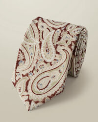 Cravate à motif cachemire en lin et soie - Gris galet et Marronhttps://www.charlestyrwhitt.com/on/demandware.static/-/Sites-ctshirts-master/default/dw24152f10/TIL/TIL0677AFB/TIL0677AFB_ROLLED_01.jpgTIL0677AFBNotre cravate en lin, soie et pure laine est un accessoire polyvalent que vous porterez encore et encore, que ce soit avec une tenue habillée ou plus décontractée. Elle ajoute de la couleur et du raffinement à n’importe quel look. La boucle de maintien au tissu assorti permet de garder l’extrémité de la cravate bien en place, tandis qu’un passant dissimulé à l'intérieur, fabriqué à la main, vous permet de redonner sa forme à la cravate après chaque utilisation.https://www.charlestyrwhitt.com/ch/fr_CH/cravate-%C3%A0-motif-cachemire-en-lin-et-soie---gris-galet-et-marron/TIL0677AFB.htmlCHF79.00InStock