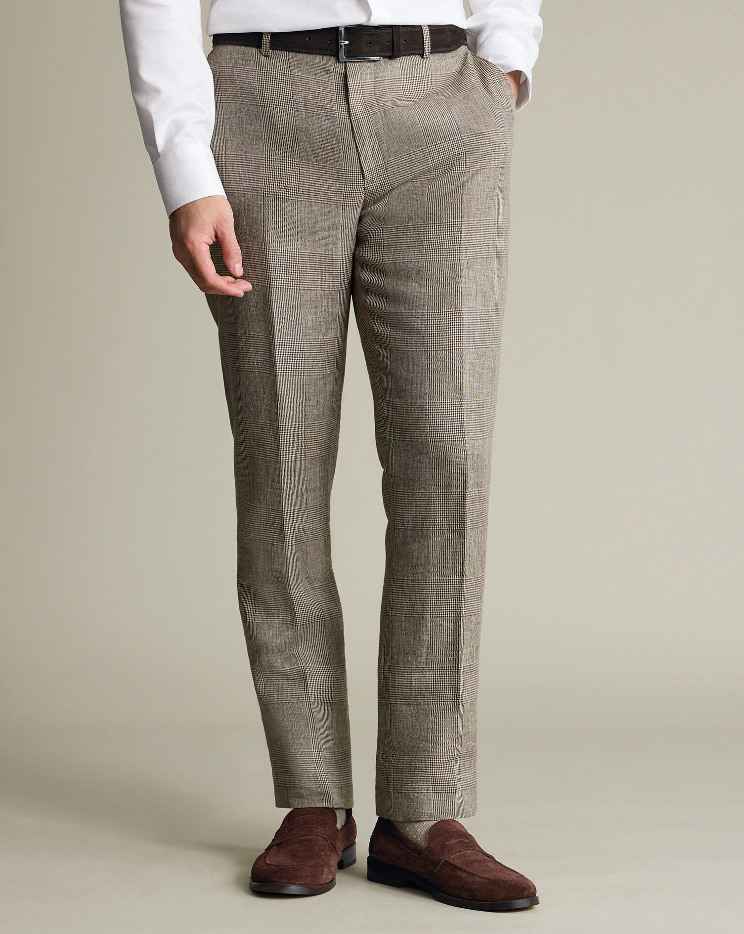 Un style élégant et taillé pour s'affiner progressivement vers l'ourlet pour une silhouette distinguée. Il apporte une coupe ajustée pour un look décontracté et élégant. Disponible en versions sans-repassage et stretch.