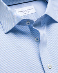 Bügelfreies Greenwich Hemd mit Streifen und Stretch - Kornblumenblauhttps://www.charlestyrwhitt.com/on/demandware.static/-/Sites-ctshirts-master/default/dw57ac94d9/FOA/FOA0012CFW/FOA0012CFW_COLLAR_DETAIL_01.jpgFOA0012CFWDas Design aus zweifach gezwirntem Garn in einer besonderen Webart präsentiert sich mit einer dezent strukturierten Oberfläche. So entsteht ein eleganter Look, der sich ideal für die Arbeit und elegante Veranstaltungen am Wochenende eignet. Dank der mittelschweren Baumwolle mit von Natur aus elastischen Eigenschaften können Sie sich frei bewegen. Und mit unserer bügelfreien Appretur genießen Sie den ganzen Tag über einen knitterfreien Look. Einfach waschen, aufhängen und wieder anziehen. Erhältlich in neun neuen Farben.https://www.charlestyrwhitt.com/de/buegelfreies-greenwich-hemd-mit-streifen-und-stretch---kornblumenblau/FOA0012CFW.htmlEUR84,95InStock00