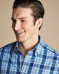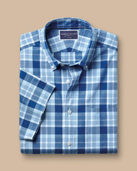 Bügelfreies Kurzarmhemd aus Stretch - Königsblauhttps://www.charlestyrwhitt.com/on/demandware.static/-/Sites-ctshirts-master/default/dw53799708/hi-res/CSN0481RYL_MODEL_UNTUCKED.jpgCSN0481RYLKomfort, wohin man blickt und fühlt: Die Baumwolle dieses Hemd bietet nicht nur natürliche Elastizität – das Kleidungsstück ist auch für einen weicheren Griff vorgewaschen, was zudem Einlaufen und Verblassen verhindert. Zusätzlich schenkt auch die Schulterpasse Bewegungsfreiheit. Das kurzärmlige Modell aus leichter Popeline punktet außerdem mit einem bügelfreien Finish für einen rundum gepflegten Look sowie mit einem Button-down-Kragen für vielseitiges Styling. übrigens: Die Muster des Hemds sind vom Madras-Karo inspiriert.https://www.charlestyrwhitt.com/de/buegelfreies-kurzarmhemd-aus-stretch---koenigsblau/CSN0481RYL.htmlEUR29,95OutOfStock4,7067
