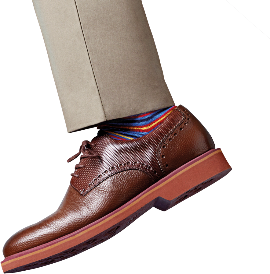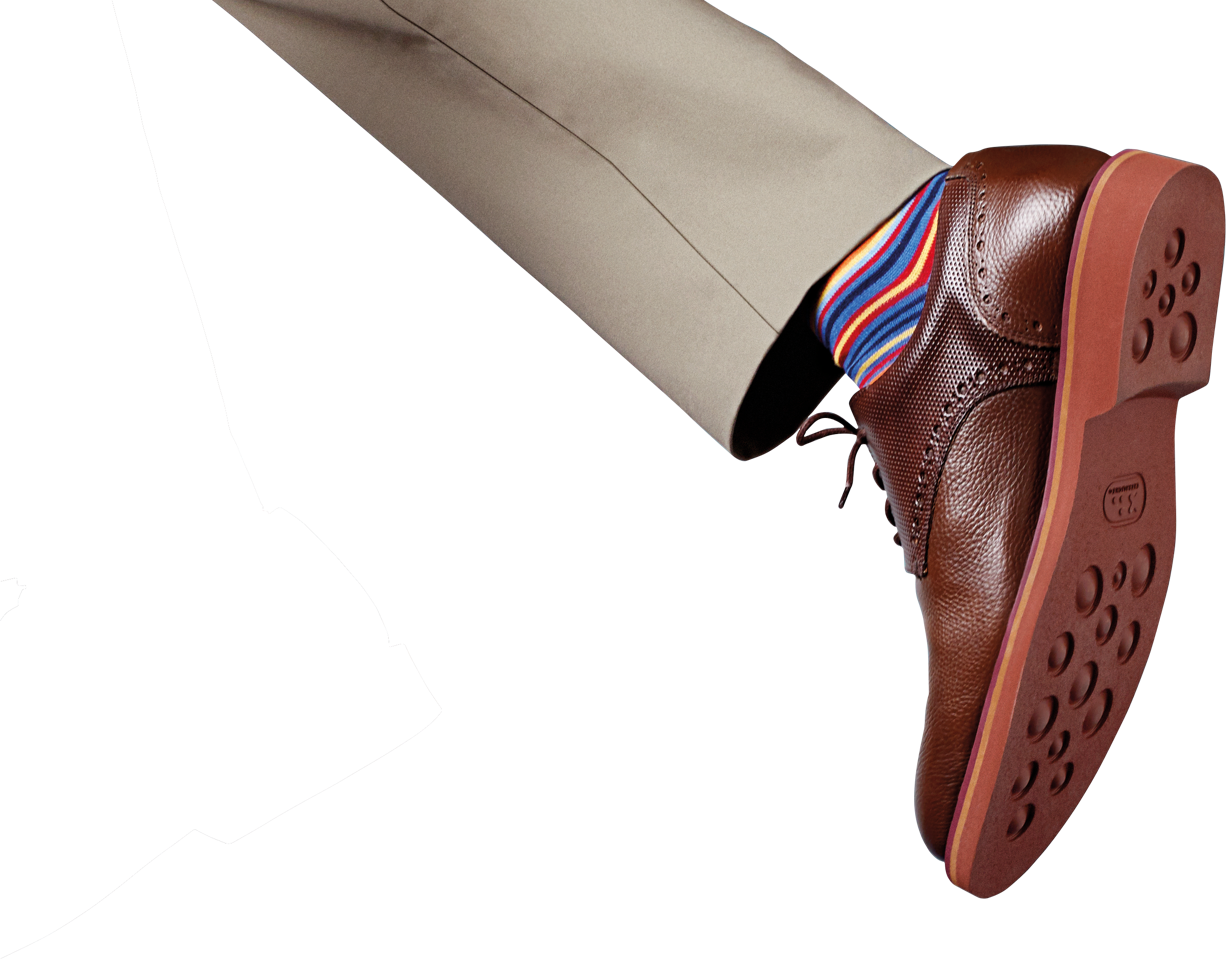 Erinnern Sie sich, wie wir auf den vorangegangenen Seiten über Form und Funktion geplaudert haben? Das trifft auch auf Schuhe zu. Wir haben den klassischen Modellen eine superflexible, vorgeformte Gummisohle verpasst und sie damit so gemacht, dass Sie sie am liebsten als Hausschuhe tragen würden.