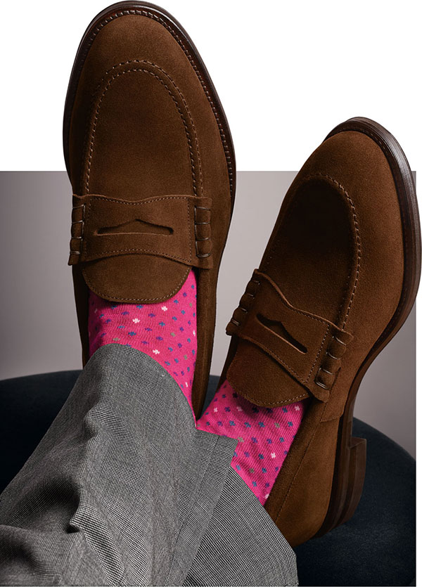 Diese Pennyloafer eignen sich dafür wunderbar. Das Lederband über dem Spann hat den charakteristischen Schlitz, in dem man früher einen Penny verstaute. Probieren Sie’s doch auch mal aus. Dann haben Sie immer Kleingeld für den Süßigkeitenautomaten dabei. Wer den Cent nicht ehrt …