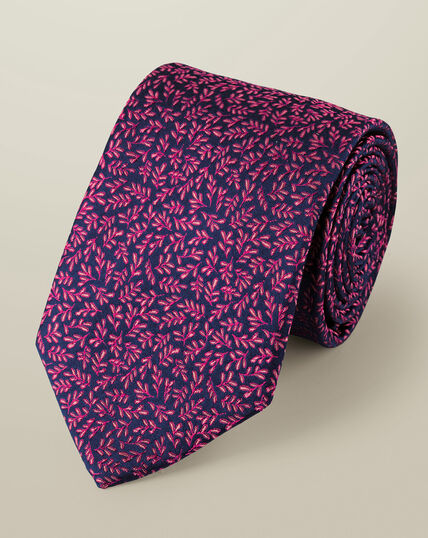 Krawatte aus Seiden mit floralem - Französisches Blau & Rosa