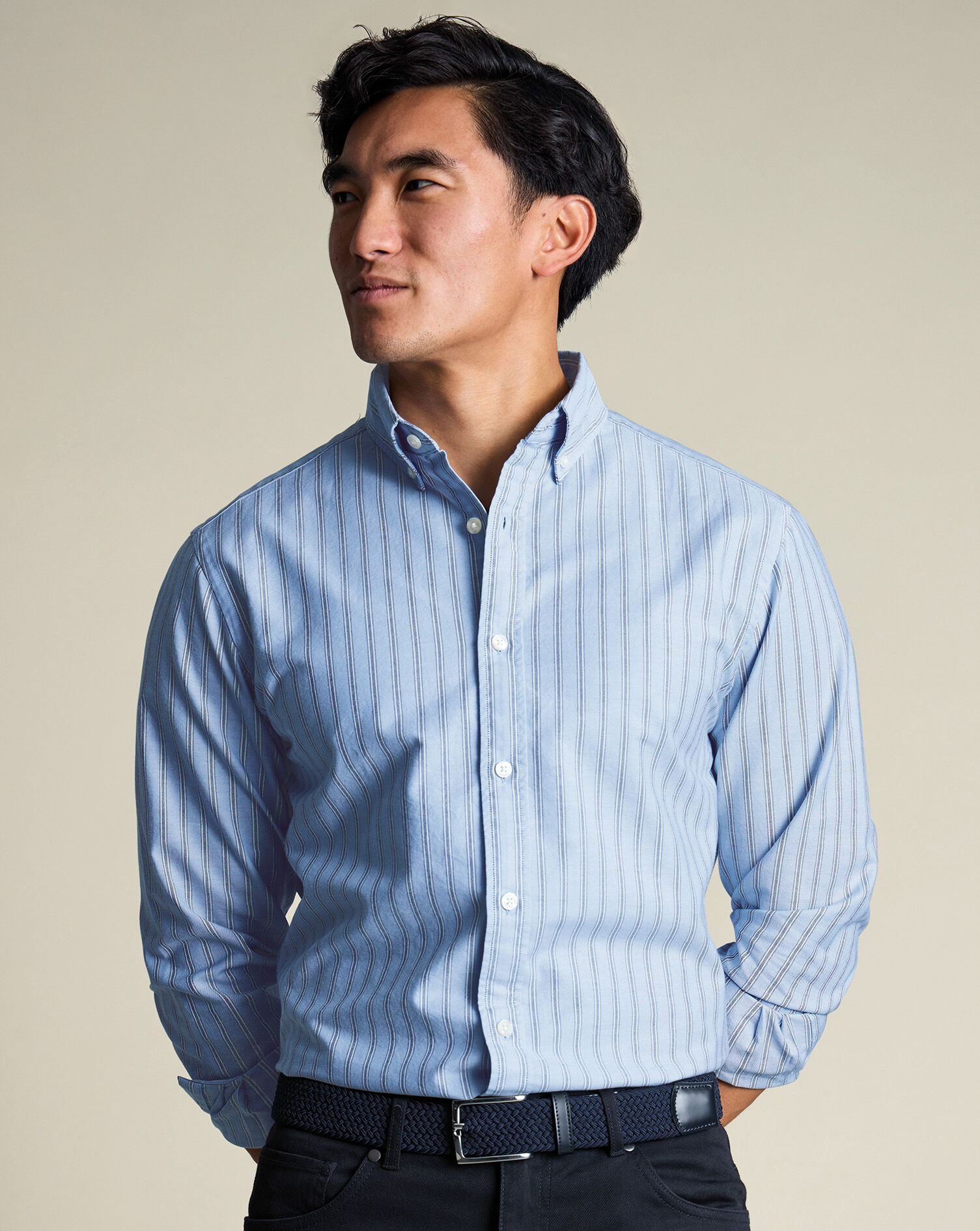 Mit Knopfmanschetten, legeren Kragen und einem Schnitt, der sowohl in als auch über der Hose funktioniert, bilden die Charles Tyrwhitt Freizeithemden das entspannte Segment unserer Hemdenkollektion.
