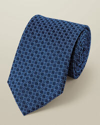 Krawatte aus Seide mit geometrischem Muster - Marineblauhttps://www.charlestyrwhitt.com/on/demandware.static/-/Sites-ctshirts-master/default/dwc703b3ee/hi-res/TIC2100NAV_ROLLED.jpgTIC2100NAVDamit nichts die dynamischen Designs dieser Seidenkrawatten trüben kann, haben wir sie mit unserem cleveren schmutzabweisenden Finish ausgestattet – so perlt Flüssigkeit einfach ab. Eine verdeckte Befestigungsschlaufe hält das Krawattenende sicher an seinem Platz, während eine Rückholschlaufe dafür sorgt, dass sich die Krawatte auch nach dem Binden leicht in Form bringen lässt.https://www.charlestyrwhitt.com/de/krawatte-aus-seide-mit-geometrischem-muster---marineblau/TIC2100NAV.htmlEUR19,95OutOfStock52