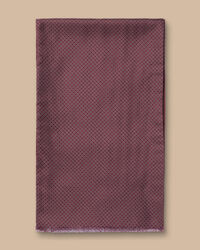 Seidenschal mit Muster - Dunkelrothttps://www.charlestyrwhitt.com/on/demandware.static/-/Sites-ctshirts-master/default/dw26b1383a/hi-res/ACC0223DRD_MAIN.jpgACC0223DRDDieser edle Seidenschal ist eine Bereicherung für jede Herbst- und Wintergarderobe. Dank der dezenten Musterung ist dieser elegante Schal vielseitig einsetzbar. Die Oberseite dieses Accessoires ist dabei aus glänzender Seide gefertigt, die das Design nochmals hervorhebt. Die Unterseite ist dagegen aus reiner Wolle und ergibt durch das unifarbene Material einen außergewöhnlichen Kontrast. Für einen stilsicheren Auftritt tragen Sie diesen luxuriösen Seidenschal am besten zu einem unserer Wintermäntel.https://www.charlestyrwhitt.com/de/seidenschal-mit-muster---dunkelrot/ACC0223DRD.htmlEUR49,95OutOfStock51
