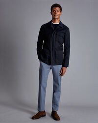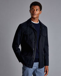 Wasserabweisende Feldjacke - Marineblauhttps://www.charlestyrwhitt.com/on/demandware.static/-/Sites-ctshirts-master/default/dw64d2c67e/hi-res/OUC0059NAV_MODEL_FRONT.jpgOUC0059NAVDieses Modell ist die Neuinterpretation der klassischen Feldjacke. Dank des vielseitigen, eleganten Designs lässt diese Jacke sich sowohl zu Anzügen und Sakkos kombinieren als auch über Strick oder legeren Hemden tragen. Durch das wasserabweisende Finish ist sie perfekt für die unbeständige Übergangszeit geeignet. Zu den neuen Details gehören die Taille mit Tunnelzug und das 4-Pocket-Design. Für verbesserte Atmungsaktivität ist die Jacke zur Hälfte mit einem Stoff aus 100 % Viskose gefüttert.https://www.charlestyrwhitt.com/de/wasserabweisende-feldjacke---marineblau/OUC0059NAV.htmlEUR149,00OutOfStock00
