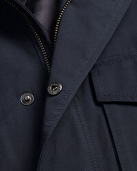 Dieses Modell ist die Neuinterpretation der klassischen Feldjacke. Dank des vielseitigen, eleganten Designs lässt diese Jacke sich sowohl zu Anzügen und Sakkos kombinieren als auch über Strick oder legeren Hemden tragen. Durch das wasserabweisende Finish ist sie perfekt für die unbeständige Übergangszeit geeignet. Zu den neuen Details gehören die Taille mit Tunnelzug und das 4-Pocket-Design. Für verbesserte Atmungsaktivität ist die Jacke zur Hälfte mit einem Stoff aus 100 % Viskose gefüttert.