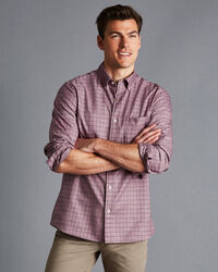 Button-Down Collar Non-Iron Twill Windowpane Check Shirt - Grape Purple https://www.charlestyrwhitt.com/on/demandware.static/-/Sites-ctshirts-master/default/dw3a97f9f5/hi-res/CSN0372GPE_COLLAR_DETAIL.jpg CSN0372GPE A non-iron twill shirt is a wardrobe staple that works (almost) as hard as you do. The clever tech behind our crease-resistant fabric keeps you looking well-presented throughout the day – and cuts down on laundry time too. As for the garment-washed finish, it creates superior softness and reliable comfort.  Style with our Ultimate Chinos and a Merino jumper on those smart-casual days.  https://www.charlestyrwhitt.com/eu/button-down-collar-non-iron-twill-windowpane-check-shirt---grape-purple/CSN0372GPE.html EUR 29.95 OutOfStock 4.80 469
