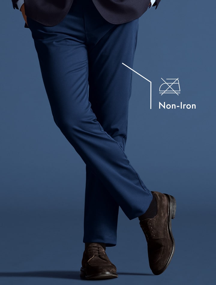 Our extra slim fit trousers are slender through the leg and taper in at the ankle. Pick these if you have a slim frame.