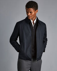 Fall Collar Harrington Jacket - Navyhttps://www.charlestyrwhitt.com/on/demandware.static/-/Sites-ctshirts-master/default/dw4892d2d9/hi-res/OUC0067NAV_MODEL_FRONT.jpgOUC0067NAVForm and function combine in our smart Harrington jacket. Its smooth fabric blends cotton and polyester in a breathable mix, offering moisture-wicking properties and superior durability. A half-quilted lining provides a little extra insulation. Pair yours with stone-coloured chinos and a Merino knit for an elevated casual look. Alternatively, wear it over your Travel Suit to stay warm when you're on the go.https://www.charlestyrwhitt.com/eu/fall-collar-harrington-jacket---navy/OUC0067NAV.htmlEUR149.00OutOfStock00